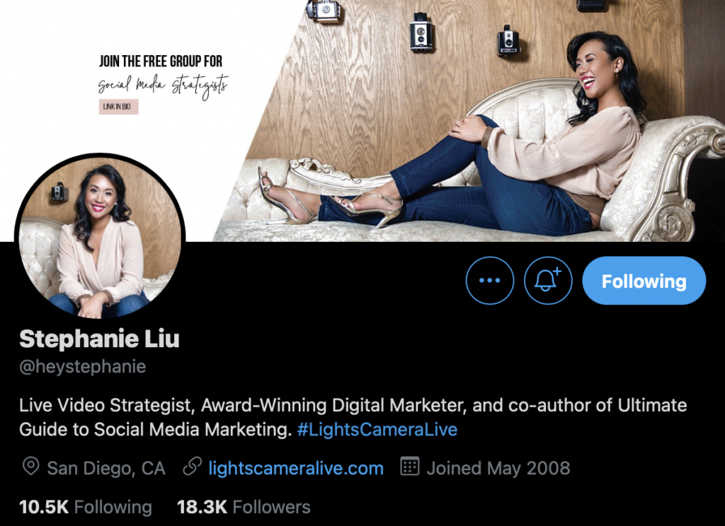 Stephanie Liu is a live video strategist running Lights, Camera, Live, an agency that works with ecommerce businesses to leverage live video in their marketing. Follow her for engaging videos featuring tips on how to use live streaming to build your brand and sell products.